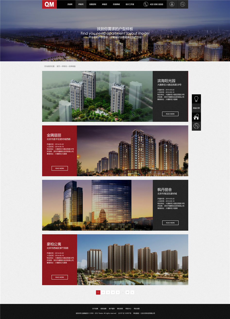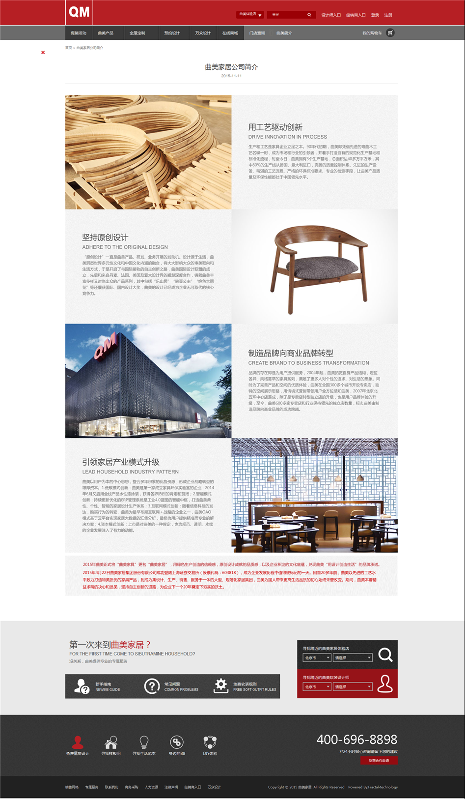 設(shè)計理念:曲美家居商城包含曲美四月活動,曲美預(yù)約設(shè)計、萬眾設(shè)計、在線商城等涵蓋官網(wǎng),社區(qū),商城等。人性化的參考,精湛的設(shè)計,無一不體現(xiàn)曲美家具的品牌高端,分形科技與其是長期合作和好伙伴,保證其網(wǎng)站穩(wěn)定運行。曲美家居官網(wǎng)高端的設(shè)計,凸顯了曲美品牌的高端。其次,社區(qū)網(wǎng)站的形式新穎,通過點贊,評論等方式了解用戶需求,不但為用戶提供了廣闊的瀏覽平臺,同時也能讓工作人員更好的了解用戶的使用感受,從而能夠讓他們的產(chǎn)品更讓大眾接受。分形科技承擔(dān)曲美家居的整體IT網(wǎng)站建設(shè),所以網(wǎng)絡(luò)推廣無疑也是分形科技承擔(dān)的工作中的一部分,長期且有效的推廣方式,使其網(wǎng)站穩(wěn)定的運行。
