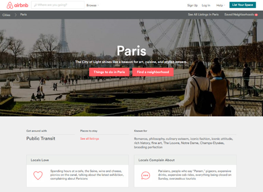 Airbnb的地址頁在內(nèi)容多樣性方面很值得我們學(xué)習(xí)。每個(gè)頁面都有各自的照片來代表每個(gè)城市?!爱?dāng)?shù)厝讼矚g”和“當(dāng)?shù)厝吮г埂贝蟠笤黾恿四康牡氐奈Α?/span>