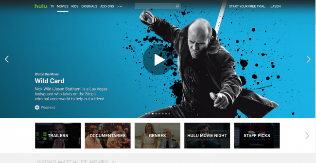 我們可以看看幾個知名的新聞與電視網(wǎng),比如探索頻道(上圖)和Hulu(下圖)。這類的媒體網(wǎng)站常常依靠滑塊來展示不斷變化的最新熱門文章和視頻等。如果你要提供頻繁變化的大量內(nèi)容(尤其是視頻內(nèi)容)時,滑塊是非常好的選擇。